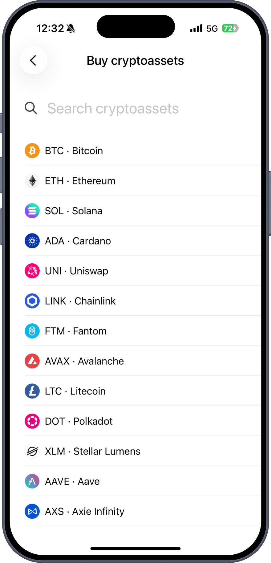 Buy popular crypto assets from LHV. We support many different crypto assets, including Bitcoin and Ethereum.